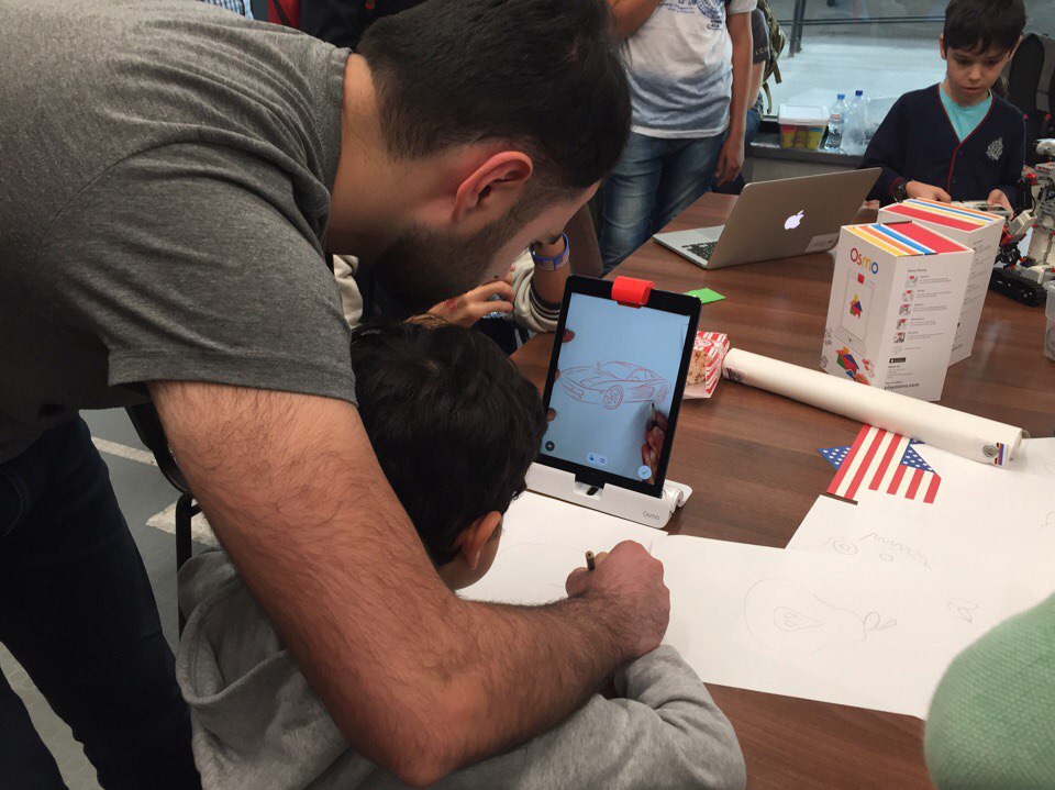 «Make Faire» запомнился еще одним интересным изобретением. Раскраски для детей вышли на новый уровень, теперь создана специальная программа на планшете, которая с помощью камеры транслирует на чистый лист рисунок, который ребенок может срисовать, это очень увлекательное занятие. Родитлеям точно пора задуматься о приобретении этой находки, потому что дети останутся бесконечно довольны.